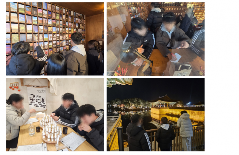 치유 여가프로그램 "마음온 힐링트립"(2025.11.28) 페이지 정보 작성자 최고관리자 작성일25-12-31 15:22 조회142회 관련링크 이전글 다음글 목록 본문 2025.11.28(금) "마음온 힐링트립" 이번 프로그램은 경주 일대를 방문하여 도자기 만들기 체험과 향수 만들기(향기테라피) 활동으로 구성되었습니다. 또한 경주의 정취가 가득한 황리단길을 산책하며 여유로운 시간을 보내고, ‘시간을 건너 온 편지’ 활동을 통해 아이들이 직접 고른 엽서에 자신의 마음을 담아 편지를 써보았습니다.하루의 마무리는 동궁과 월지의 아름다운 야경을 감상하며, 일상에서 벗어나 마음의 온기를 채우는 시간을 가졌습니다. 이전글 다음글 목록